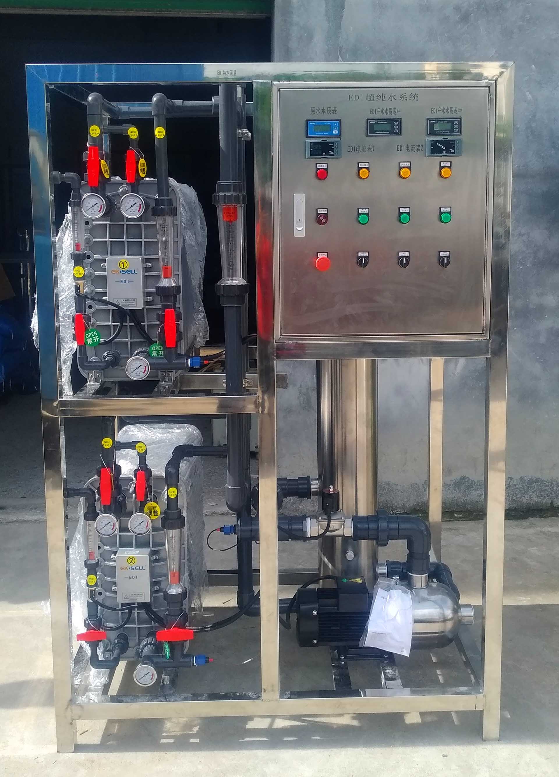? ? EDI超純水處理設(shè)備是整套超純水設(shè)備的核心設(shè)備,超純水設(shè)備分為前端與后端,前端主要是把市政自來水供水的大的果顆粒及微小的分子去掉,前端設(shè)備出來的水就是我們?nèi)丝梢院鹊娘嬘盟?。超純水后端的設(shè)備核心就是EDI設(shè)備,加了這個設(shè)備之后,把正負(fù)離子去除出來的水就是超純水,這個是去掉離水的水,所以也叫去離子水,這個設(shè)備也可以叫水處理設(shè)備。這個設(shè)備過濾出來的超純水是給機(jī)器用的,一定不能讓人喝的,人喝了之后有可能會把人體的一些離子吸走,造成人體器官的病態(tài),所以超純水只能用于工業(yè)用途。
